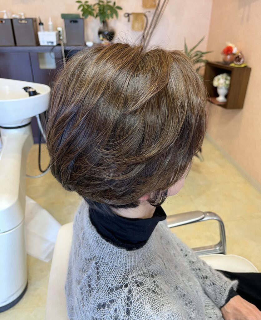 その方のお顔立ちや雰囲気に合うようにゆっくりと調整しています。長年のお付き合いがあるからこその調整です。違和感なく、老けることなく、素敵に年齢を重ねていくのに合わせてカラーチェンジもゆっくりと。